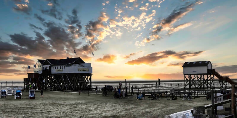 Pfahlbauten St. Peter-Ording Strand ist ein digitales Kunstwerk, das auf Fotografie basiert und künstlerisch bearbeitet wurde. Es zeigt die ikonischen Pfahlbauten am weitläufigen Strand von St. Peter-Ording, eingebettet in das besondere Licht der Nordseeküste. Die erhöhte Architektur wirkt schwebend über dem Sand, umgeben von Weite, Wind und Himmel. Durch gezielte digitale Akzente entstehen Tiefe, Struktur und Atmosphäre. Pfahlbauten St. Peter-Ording Strand steht für Küstenkultur, Naturverbundenheit und die stille Erhabenheit norddeutscher Landschaften.